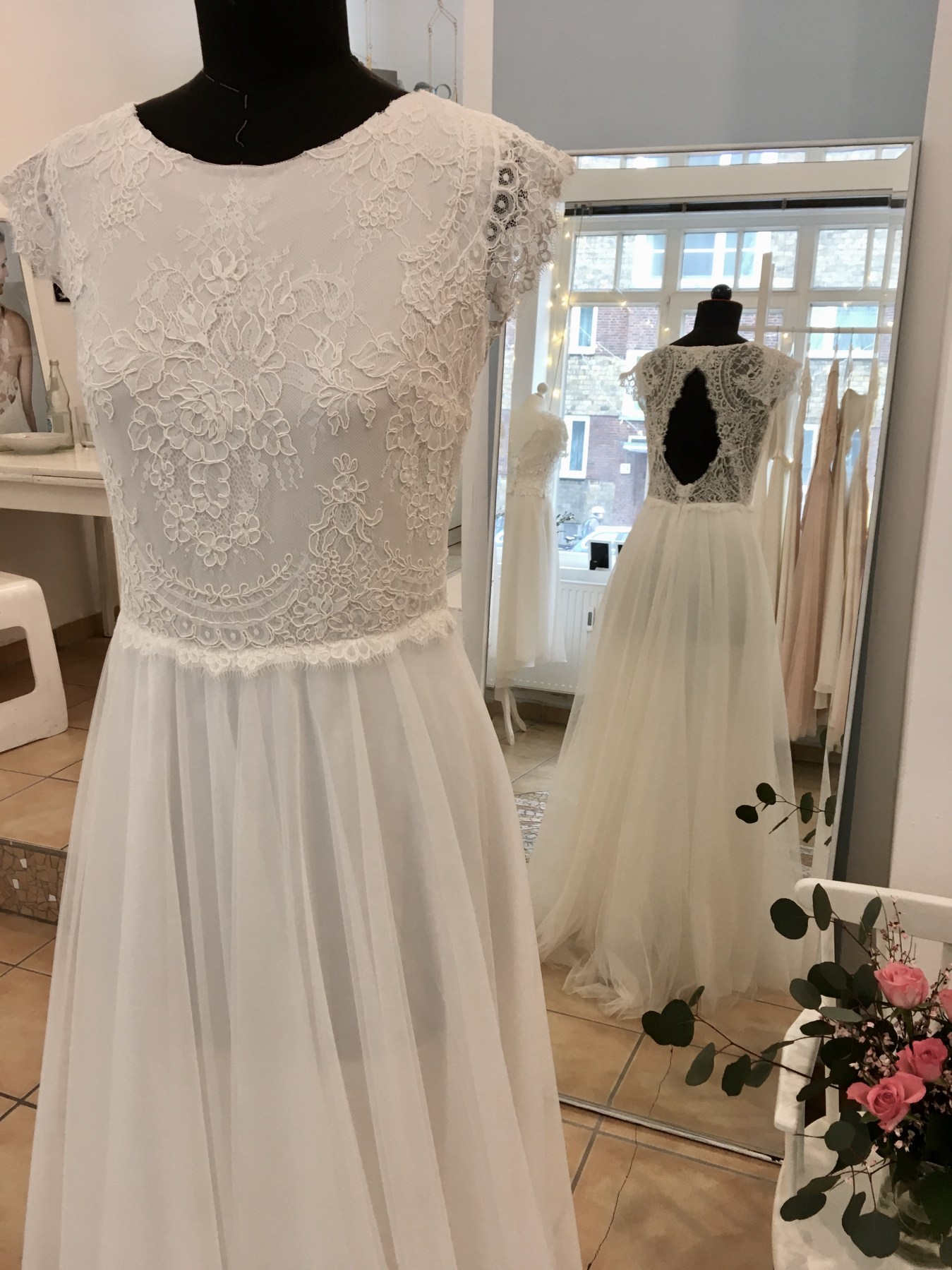 Auf Wunsch zaubern wir Dir aus unserem Softtüll-Rock Allegro und Spitzen-Top Lyra das Kleid Allyra. Es ist unglaublich leicht und bequem, die edle Spitze ist auffallend schön und der Rücken ein wahrer Eyecatcher!