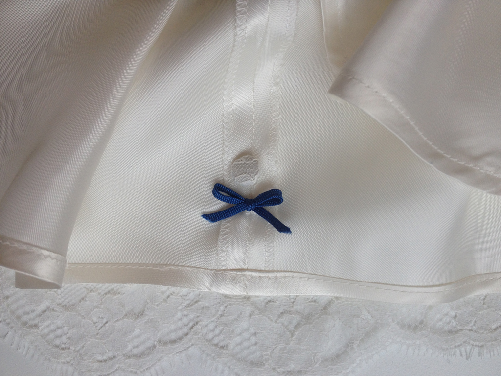 Nach altem Brauch sollte jede Braut „etwas Altes, etwas Neues, etwas Geliehenes und etwas Blaues“ tragen. Deshalb nähe ich meinen Bräuten, neben Ersatzknöpfen, auch gern einen kleinen blauen Glücksbringer versteckt ins Futter des Brautkleides.